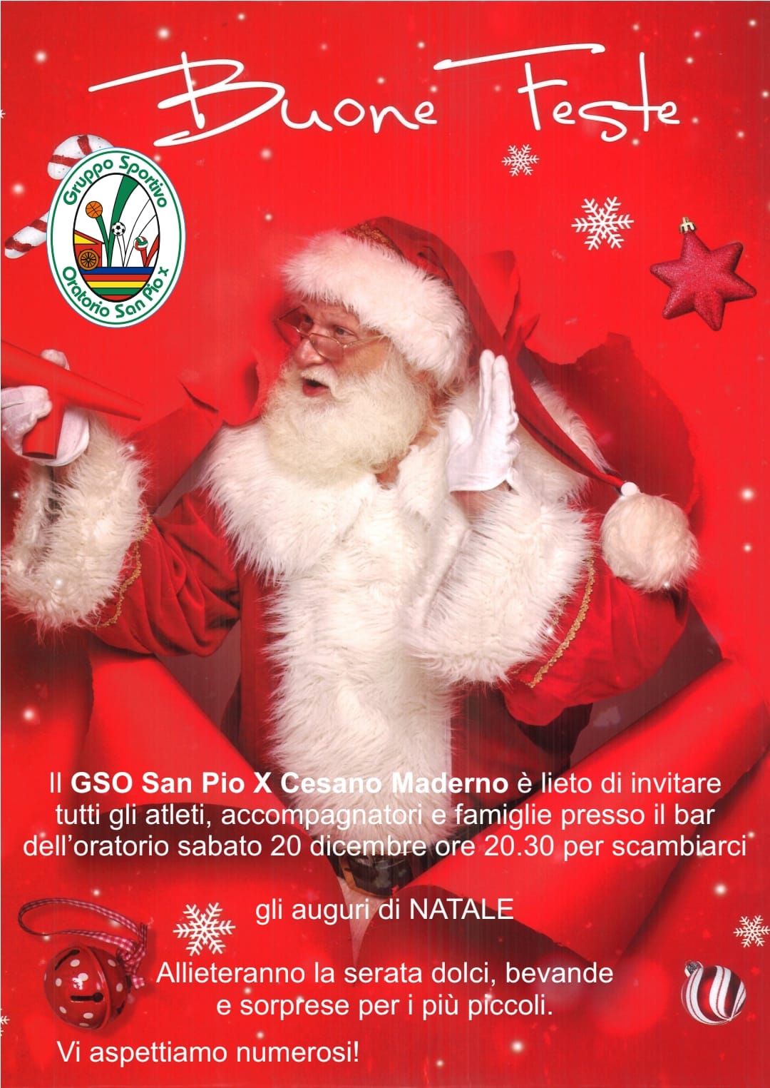 - Natale degli sportivi: sabato 21 dicembre 2024.